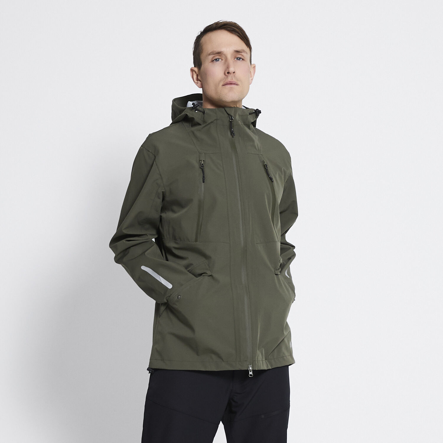 Skaljacka i slitstarkt och vattentätt material (10.000mm vattenpelare) med god andningsförmåga. 4-vägs stretch som ger jackan en hög komfort och rörlighet. Tejpade sömmar och vattentäta dragkedjor. Bondade ficköppningar med tryckknappar. Huva med elastisk dragsko för bästa passfrom. Justerbara ärmslut med kardborreband. Ventilationsdragkedjor på båda sidor. Reflexer för ökad synlighet. Normal passform.